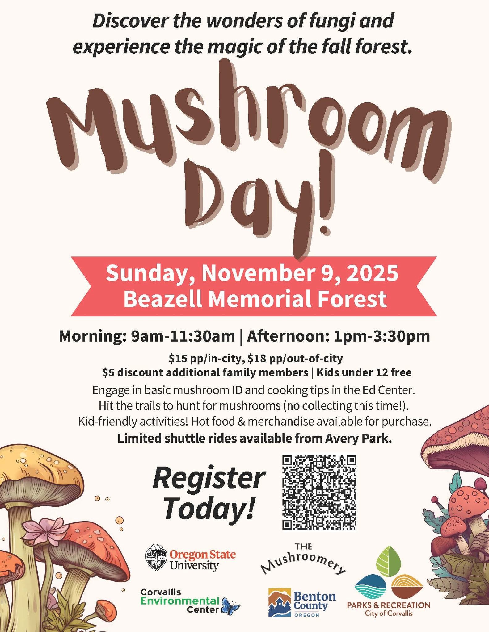 Mushroom Day Flyer The community is invited to explore the fascinating world of fungi at Mushroom Day on Sunday, Nov. 9, 2025, at Beazell Memorial Forest. This family-friendly event offers a chance to learn about mush...